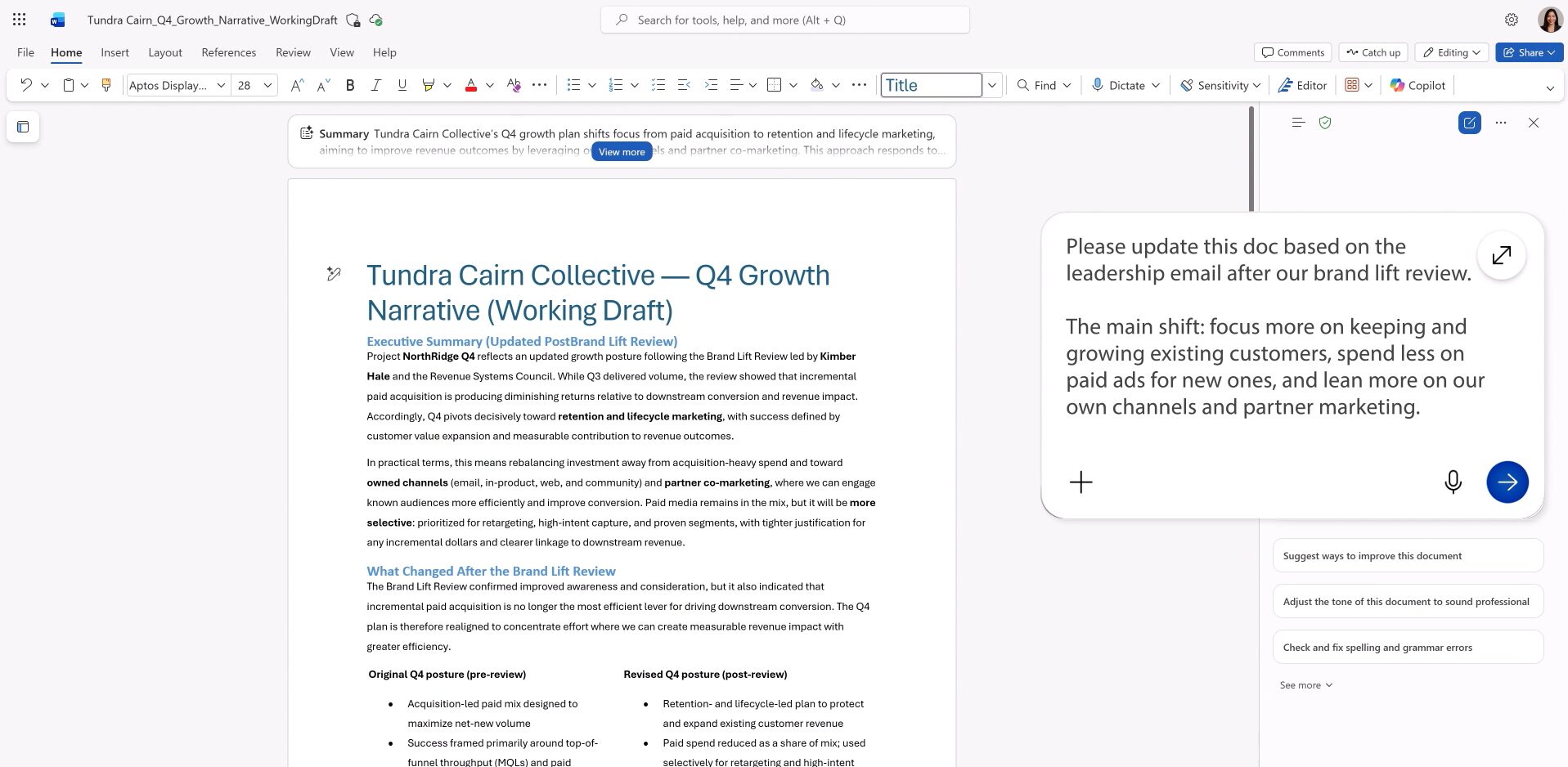 The old Copilot was essentially a smart assistant that lived in a side panel. You could ask it questions, have it summarize content, or generate a draft you would then paste in and edit yourself. Useful, but you were still doing most of the work.